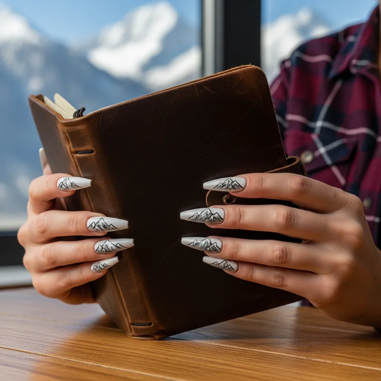 Mountain silhouettes with snow caps inspire adventure. This nail design celebrates winter landscapes. The peaks feel majestic and beautiful.
