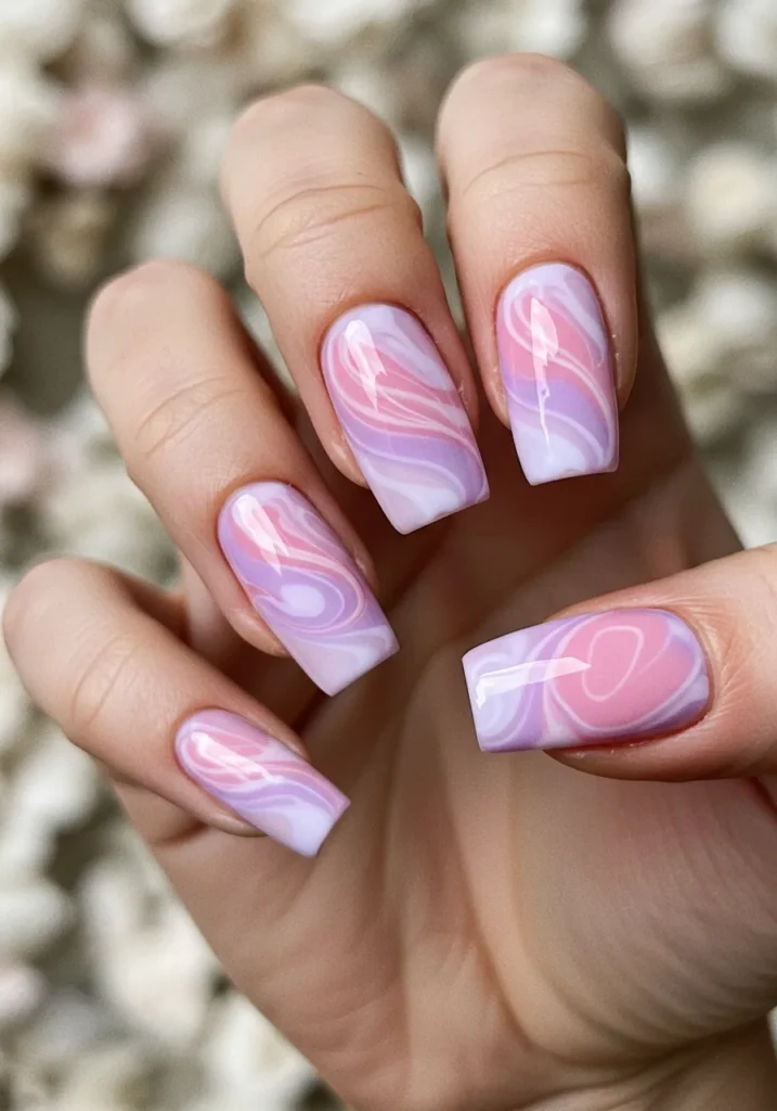 Romance meets creativity in this dreamy pastel blend. Soft pink swirls with gentle lavender to create a delicate, spring-ready gradient. This look is perfect for date nights, baby showers, or just adding a touch of whimsy to your day. A combination of light sponge dabs and brush strokes creates a seamless swirl. Add a matte or glossy finish depending on your mood.