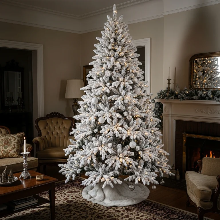 Choose flocked tree recreating vintage winter wonderland. The snow-covered branches create classic Christmas aesthetic. Your flocked tree snows gorgeously!