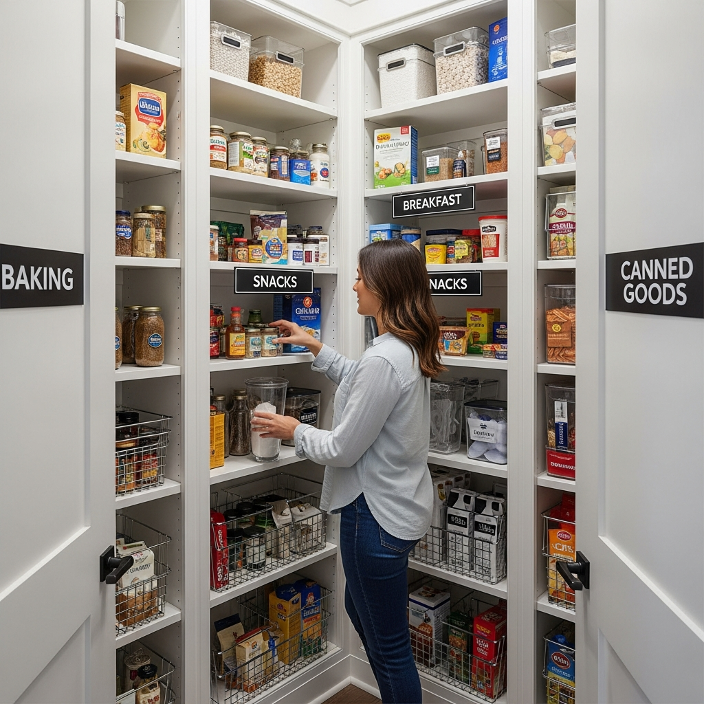 8. Zone Organization Categorizes Walk-In Pantry Sections